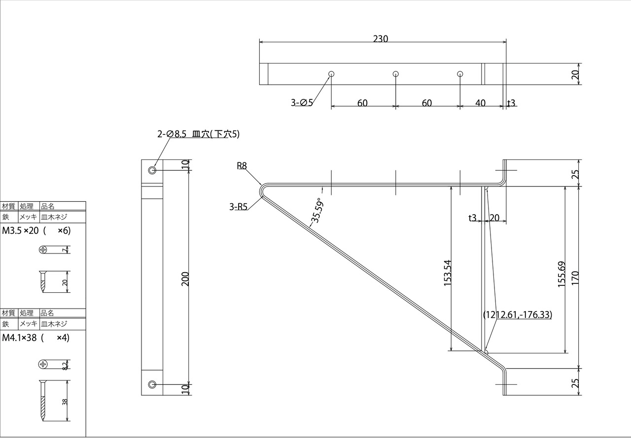 奥行20〜25cm 前後の棚材を固定するための棚受