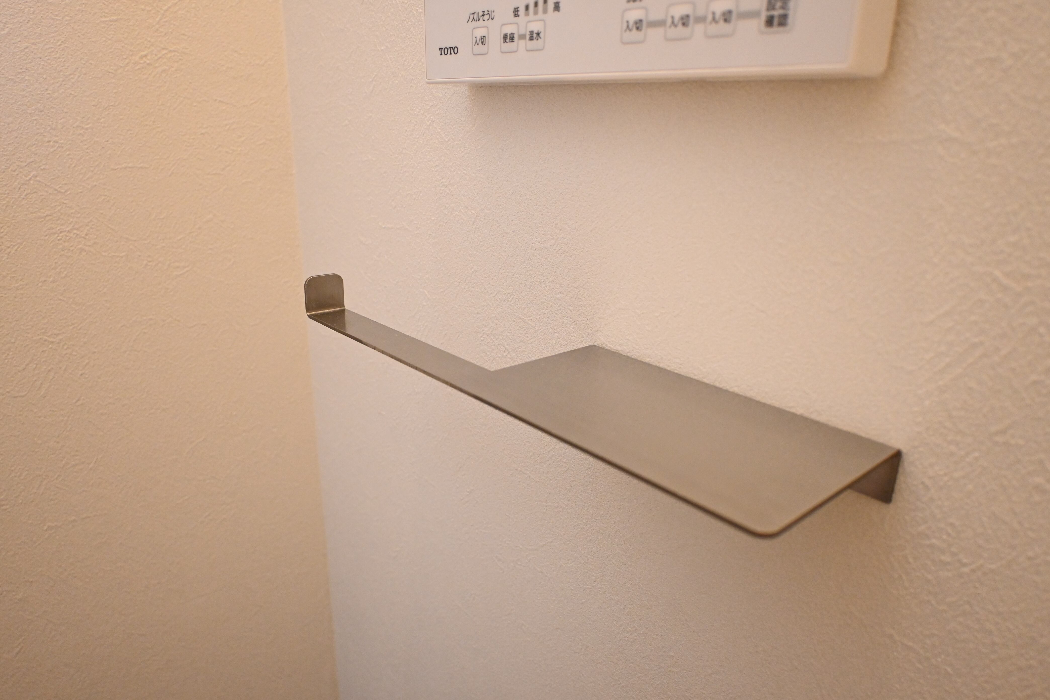 シンプルなステンレスのトイレットペーパーホルダーです。